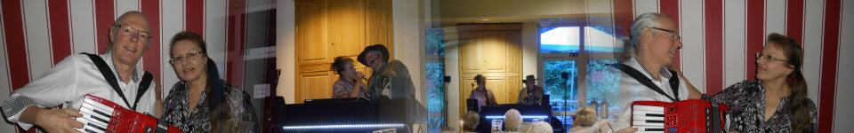 Oft ist dies mit dem Akkordeon möglich, wobei ich ein Digitales Instrument spiele und somit die Möglichkeit habe durch drahtlose Übertragung mich im Raum zu bewegen, was verstärkt über eine kleine kompakte Anlage allen ein angenehmes Hören erlaubt.